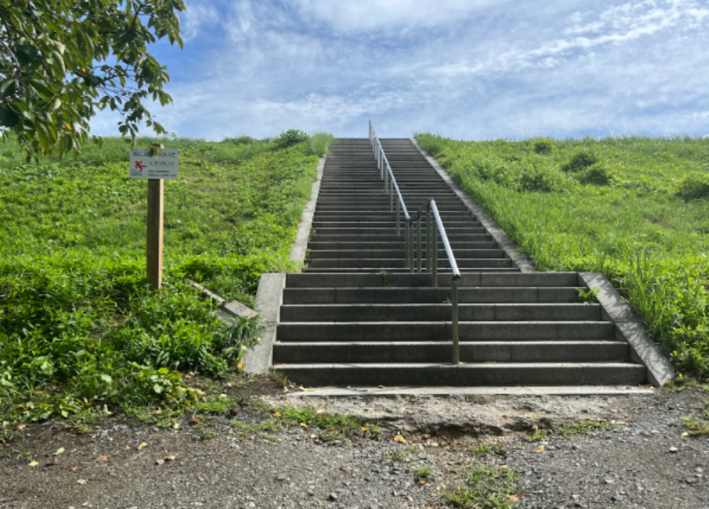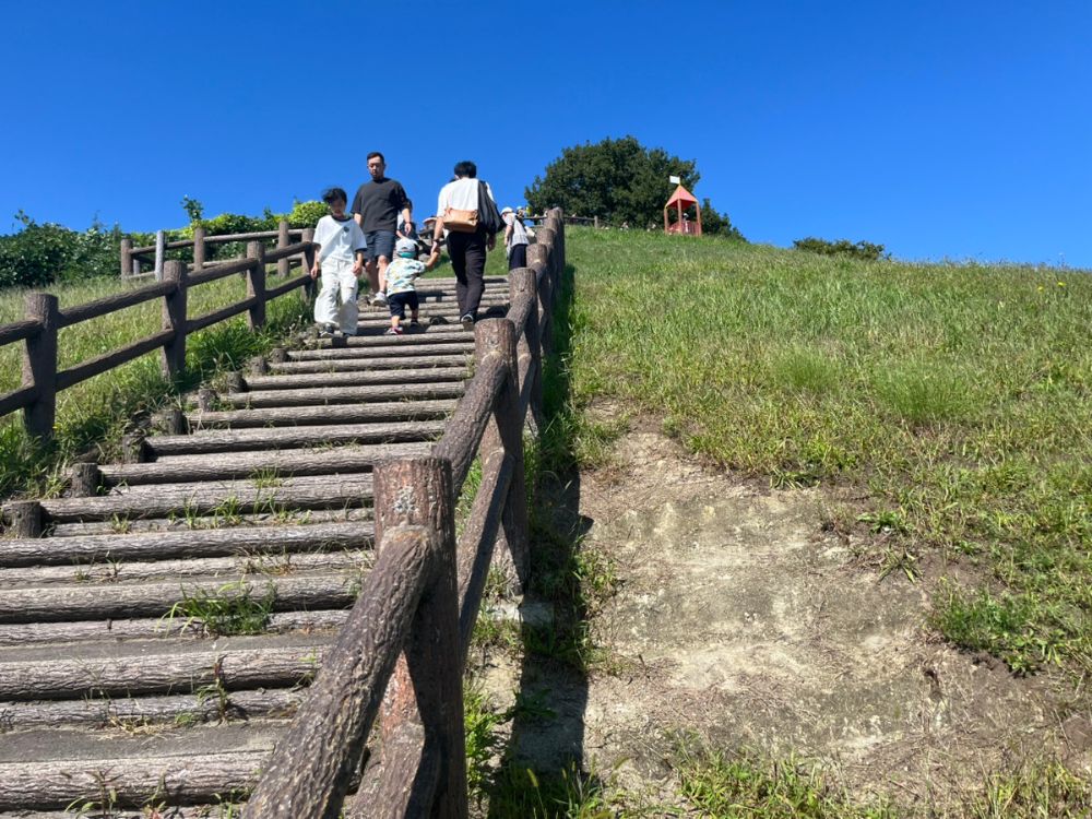 階段から登っていき、頂上につくと利府町の景色を見渡せました。風を受けながら一気に滑り降りる爽快感は、子どもだけでなく大人も思わず笑顔になります。