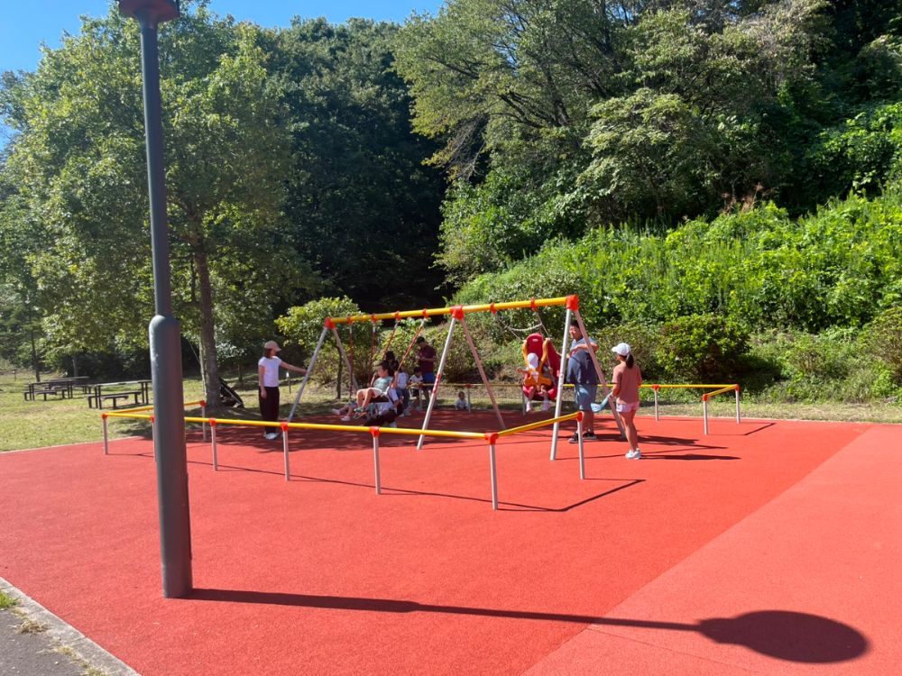 遊具エリアには、すべり台以外にもブランコや複合遊具などがあります。ブランコはシートタイプもあり、小さな子どもでも安心です。