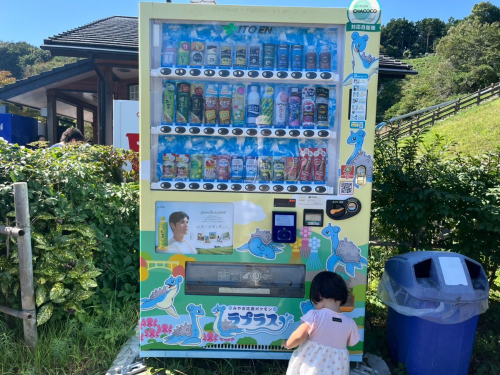 公園内には、ラプラスがデザインされた自動販売機もあり、子どもも大喜び。