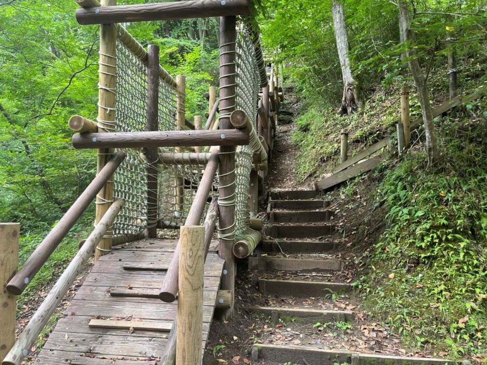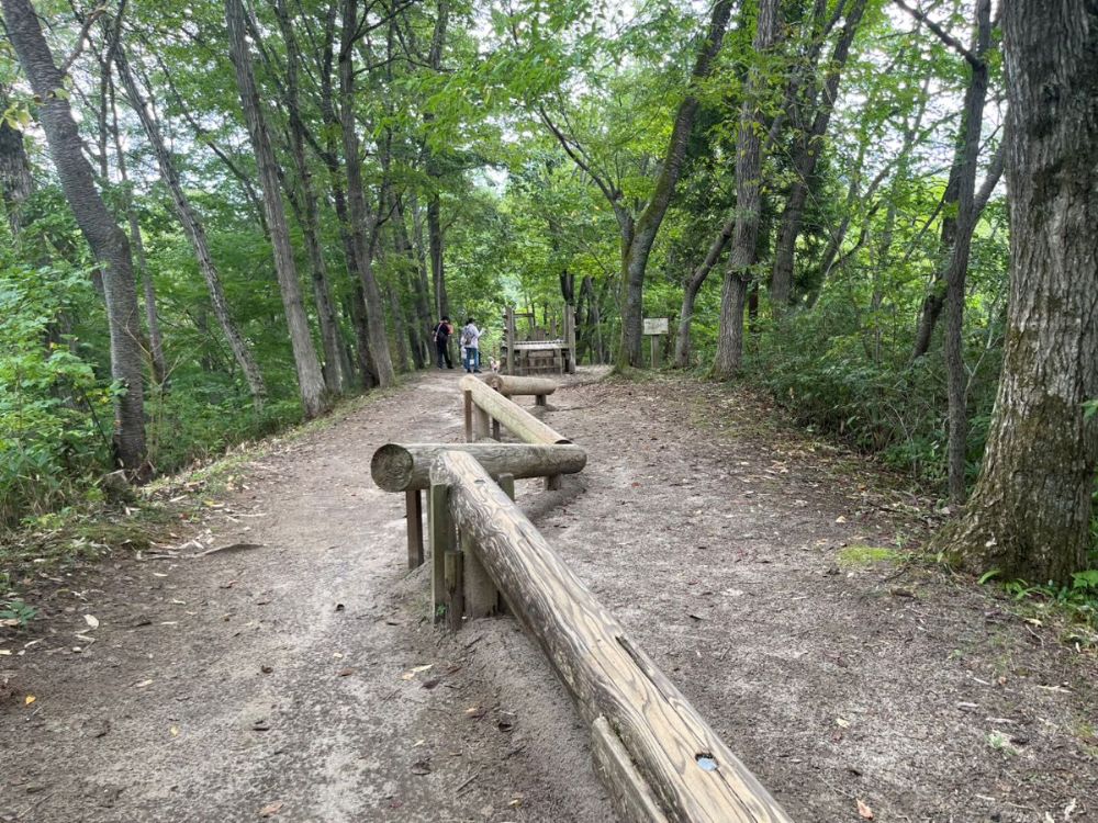 アスレチックの隣には、整備された道もあるので、子どもは遊具を進み、大人は安全な道を歩きながら並走もできます。親としてはとてもありがたい配慮ですね。