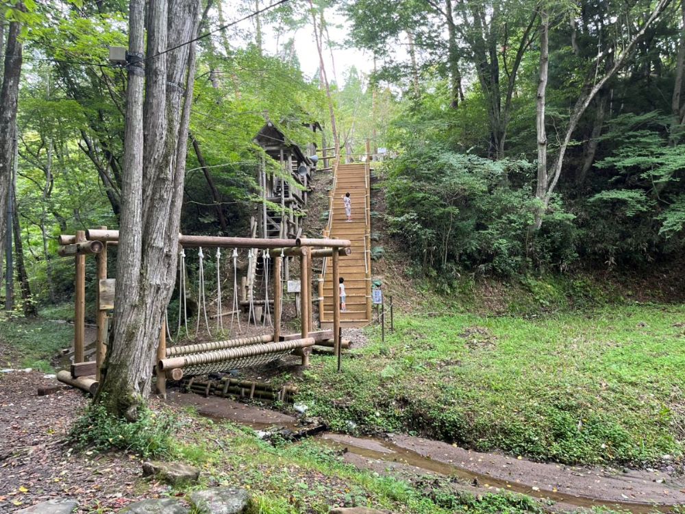 スタート地点とは別の場所に到着。県民の森にあるアスレチックコースは、自然の中で思いっきり体を動かしたい方にピッタリの場所です。森の風景を楽しみながら、親子で汗を流してみてはいかがでしょうか。