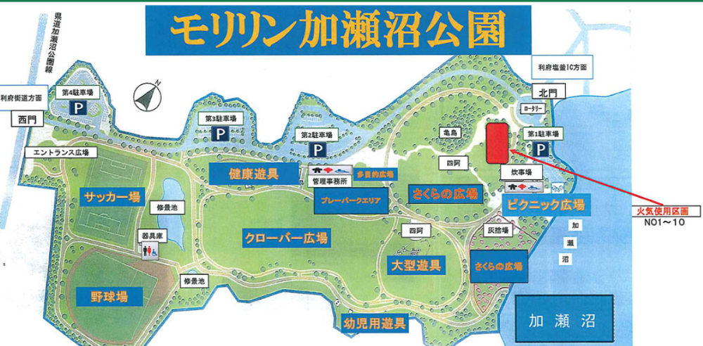 また、加瀬沼公園では火気使用区画が設けられており、そこでバーベキューができます。