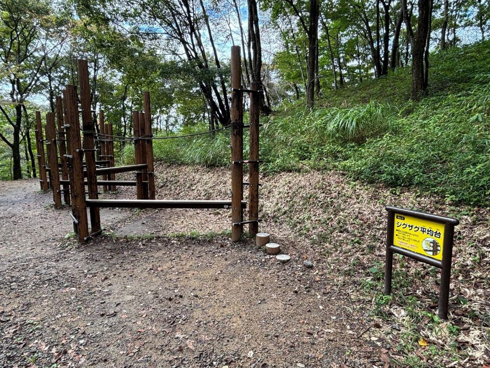 ピクニック広場を上ったところにあるのが、「わんぱくランド」です。わんぱくランドには、約20種類のアスレチックがあります。8〜12歳用なので、小学生のお子さんにぴったり。思いっきり体を動かして遊べますよ!