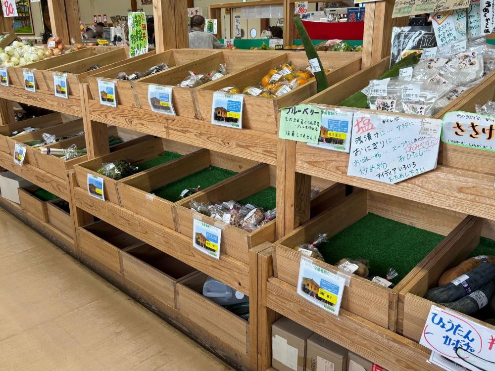 家族で行き、近隣の産直所「おおひら・万葉館」で地域自慢の農産物や名産も見つけてきましたよ。