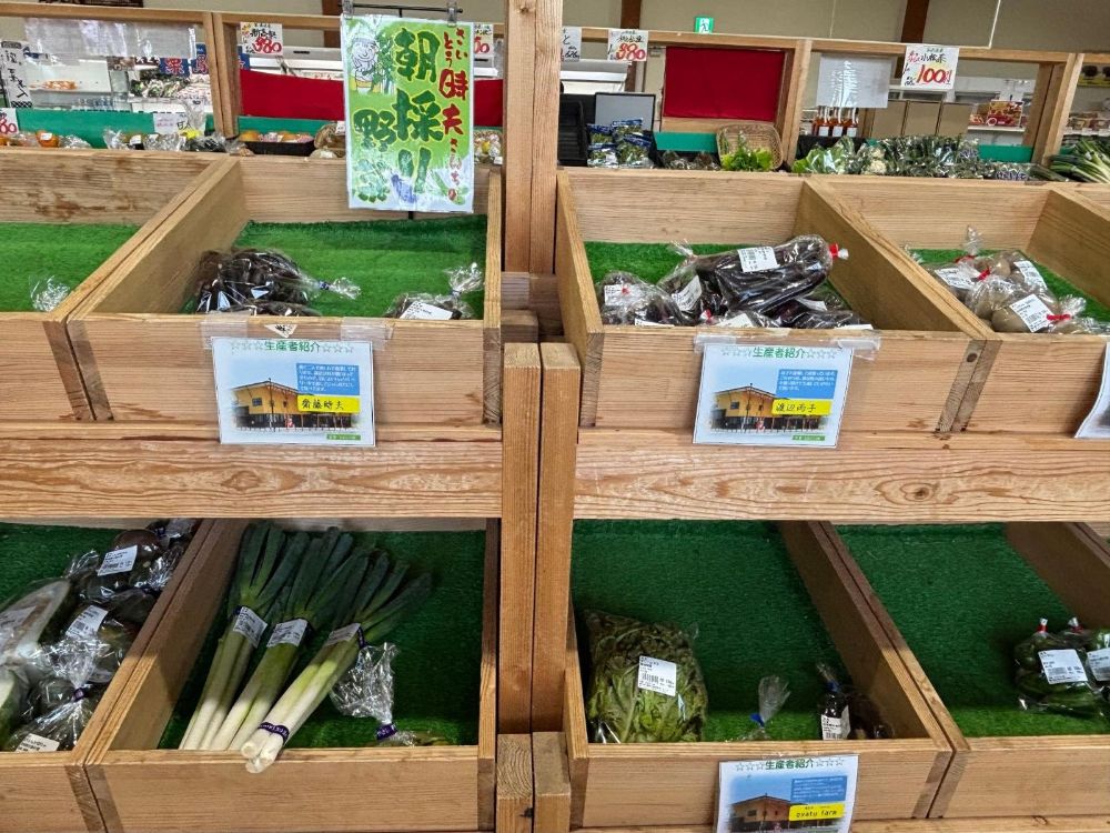商品棚には生産者の方々のコメントが添えられていて、野菜づくりへの思いが伝わってきました。