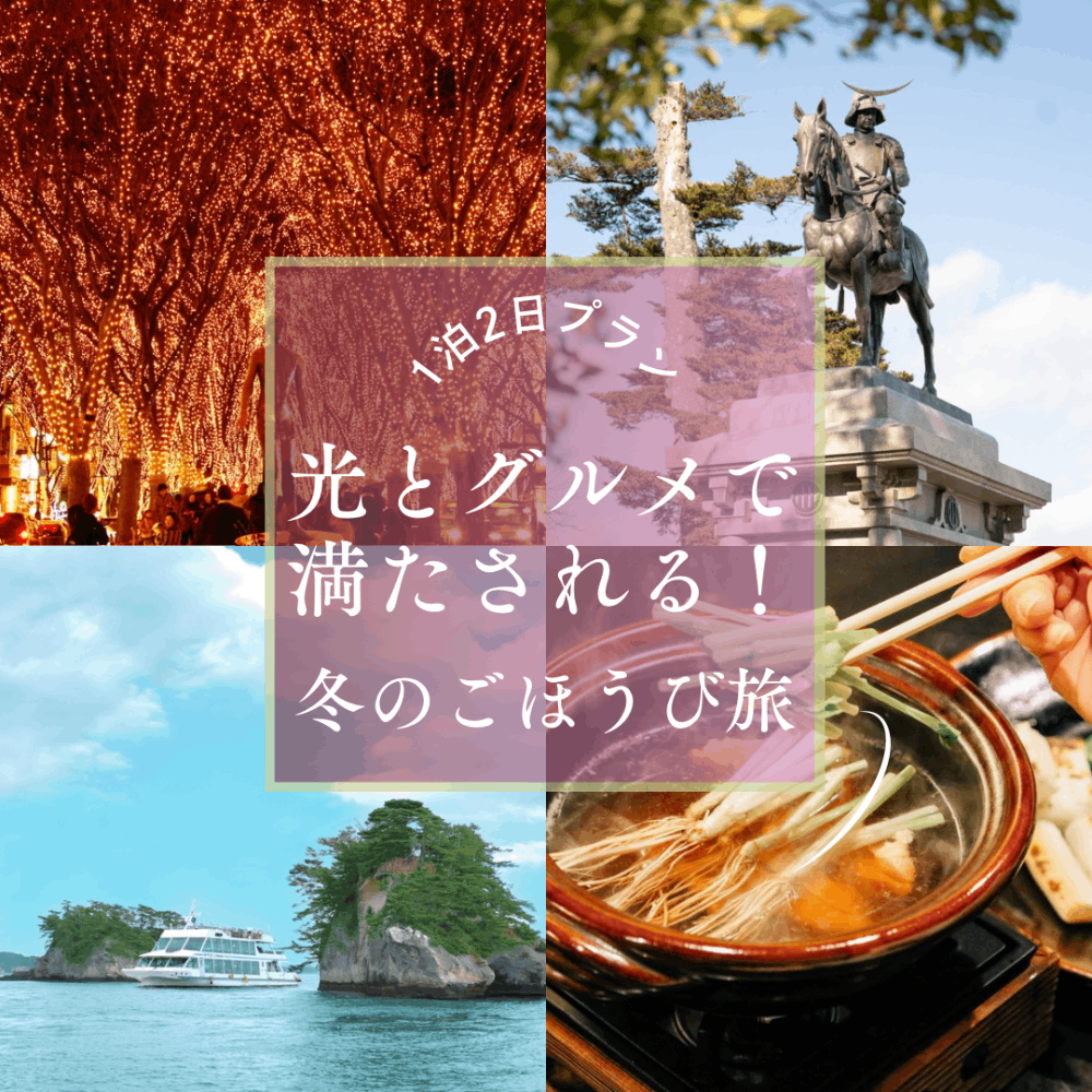 冬の仙台を代表するイルミネーション「SENDAI光のページェント」と、杜の都ならではの冬の味覚を満喫する旅をご案内します。