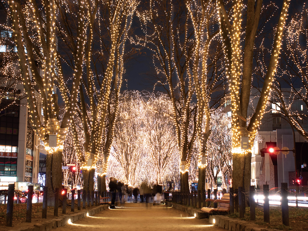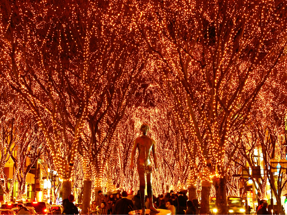 ・約48万球のLEDがけやき並木を照らす仙台の冬の風物詩。