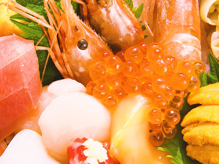 ・「松島さかな市場」で昼食。海鮮丼や焼き牡蠣を味わおう。