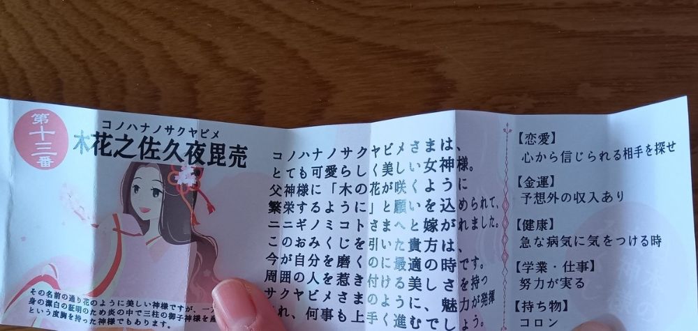 吉・凶表示がなく、心のあり方を示してくれる「日本の女神様おみくじ」を引くことにしました。