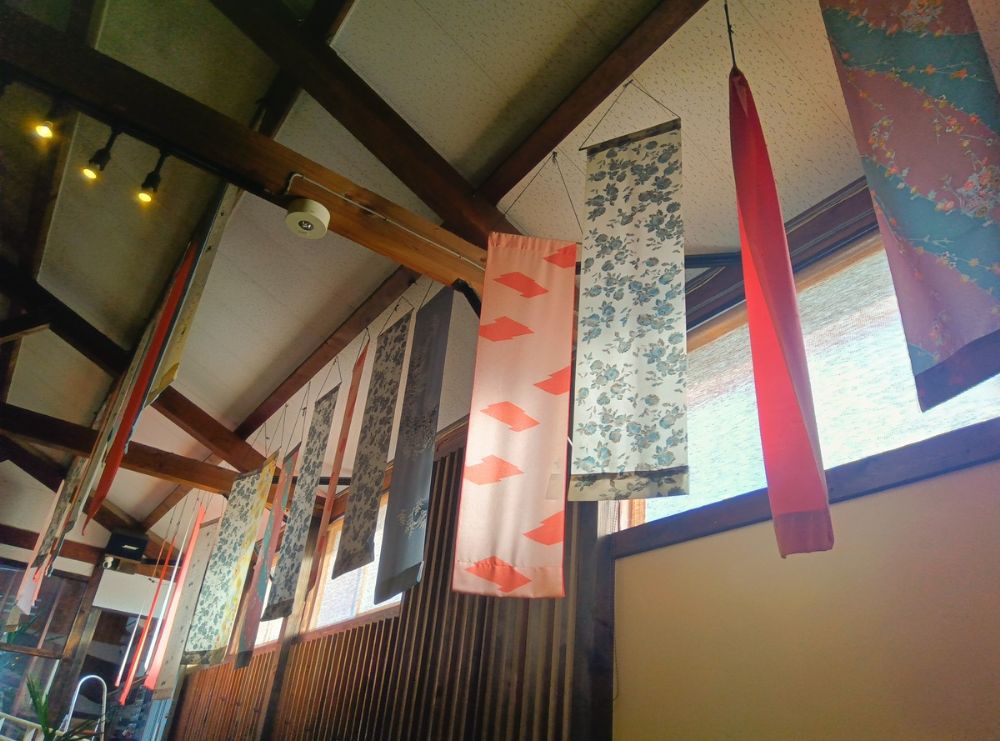 その天井を、さまざまな柄のタペストリーが彩っていました。