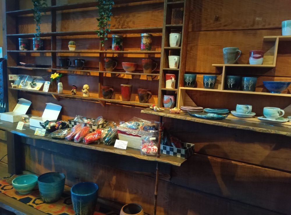 飾り棚に置かれた陶器などは、購入も可能なようです。