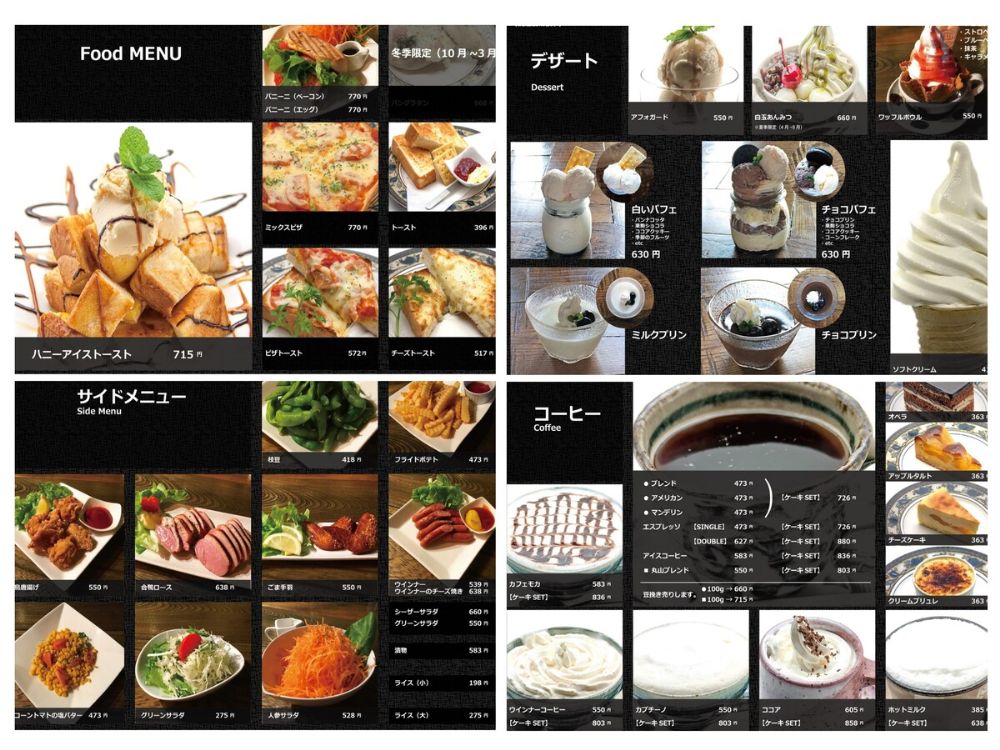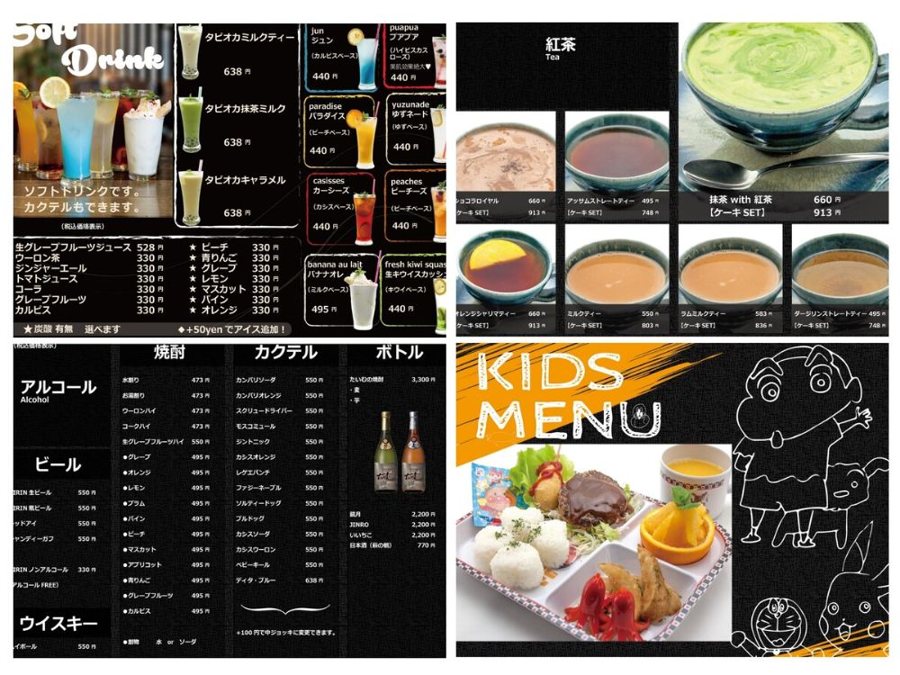 その他、デザートや飲み物のメニューも選びきれないラインナップ。