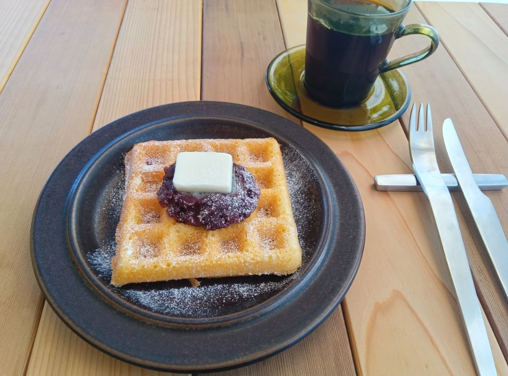 米粉のワッフルは、表面はサクサク、中はふわふわ。