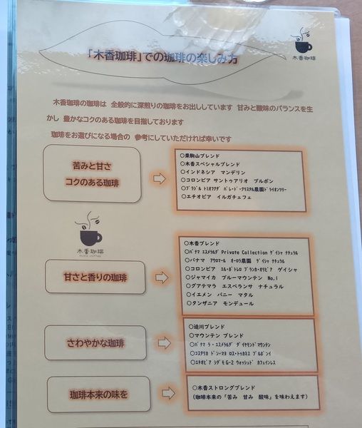 「注文に迷ったらお店の名前が入ったメニューを選ぶべき」という言葉を聞いたことがあり、珈琲は「木香ブレンド」にしました。