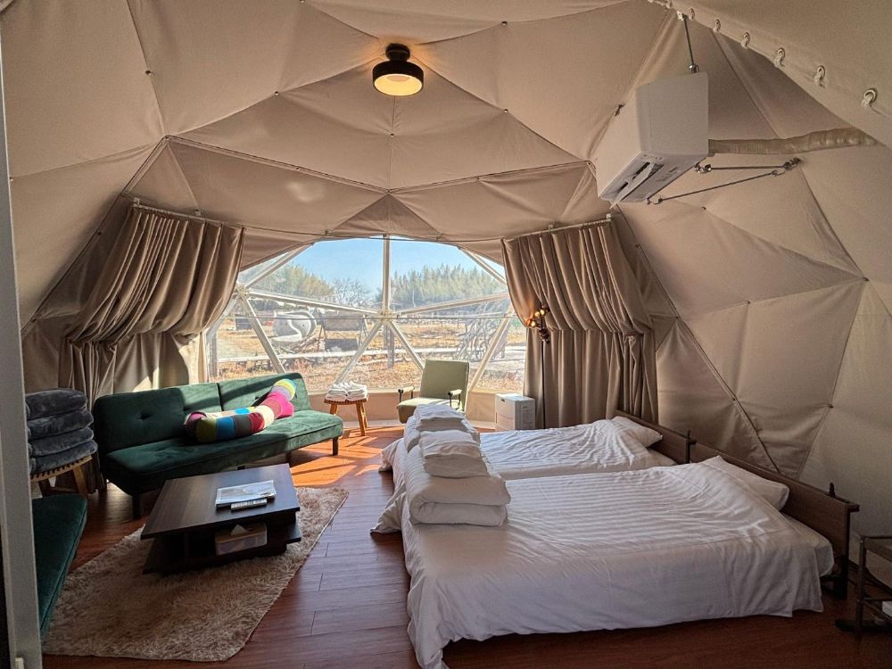 キボッチャのグランピングドームは、冷暖房完備で清潔感のある室内。「家族でわいわい星空を見ながら泊まったら最高だろうなあ」と想像してしまいました。