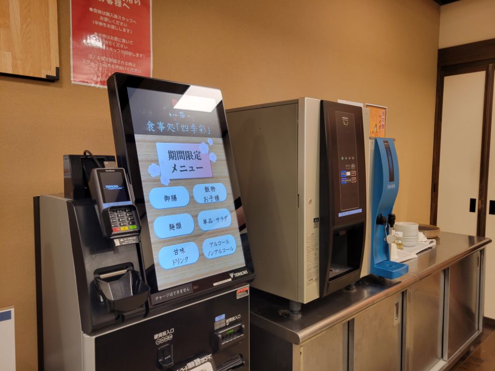 御座敷に座ってゆっくりメニューを選んだのち、自動券売機で食券を購入してスタッフの方に渡します。その後は席まで料理を運んで来てくれます。