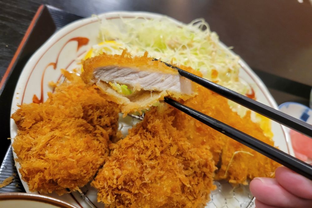 ヒレカツは思った以上に分厚く、男の私でも4口でなんとかというところ!こちらは柔らかさが印象的でした。さすが【もちもちとした歯ごたえ】と言われるだけあります。