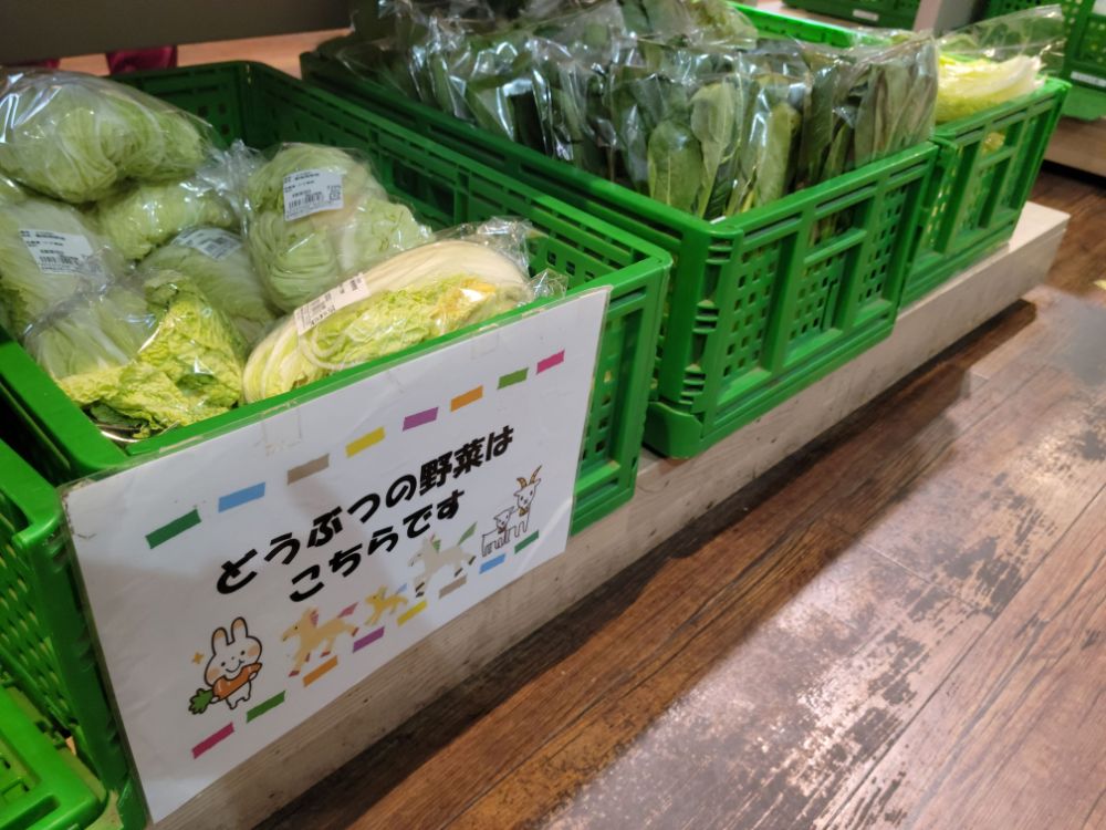 そして『どうぶつの野菜』というものが野菜コーナーの一角にあります。ここで野菜を買って、そのまま「わんぱくの森」にいる動物たちに与える事が出来るようです。餌やりをしてみたい方はこちらで買ってから「わんぱくの森」に行くと良いでしょう。