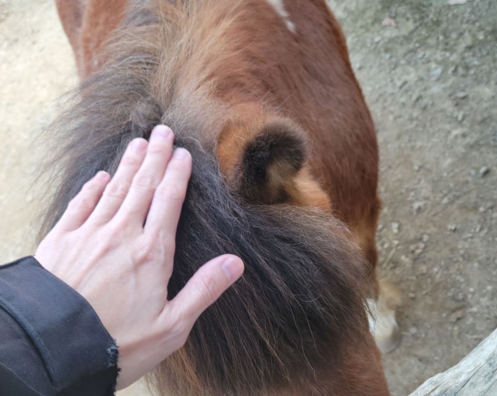 そして…、撫でさせてくれました!こうやって触れる動物は限られていますが、入場料無料でポニーに触れられるだけでもかなり満足です。