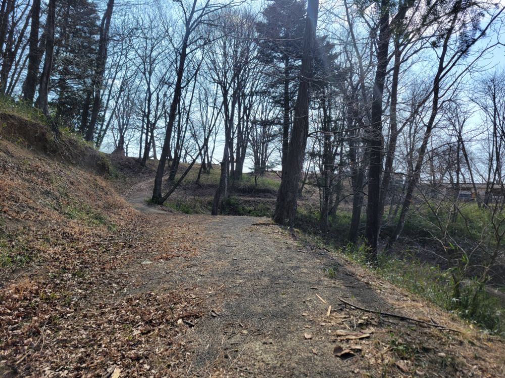 外周の道はこんな感じです。思っていたより森を歩いている感じがして、「わんぱくの森」と名付けられてる通り、わんぱくな子なら走って探検したくなるような道です。大人であれば、昔のおばあちゃん家の裏山なんかを思い出す人もいるんじゃないでしょうか。私は少し思い出しました!