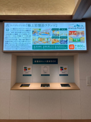 お帰りの際の返却は入り口前の岩盤浴セット返却BOXに衣類とバッグを分けて返します。