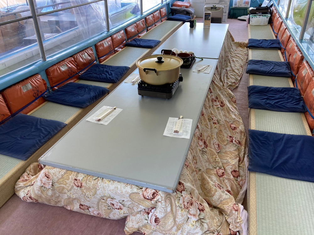 今のシーズンはこたつ舟。12~3月に運行しています。