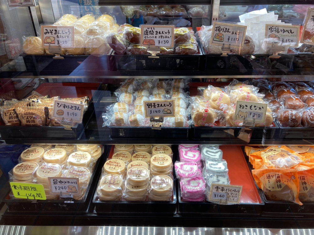 私は帰りの電車で食べる用に規格外1つと、お土産にバター最中と猫最中、肉球マークがかわいい生どらやきを購入。バター最中はゲランド塩の塩気が癖になるバター入り最中。猫最中は柚子餡入りの最中。生どらやきは石碑から飛び出した猫神様がどら焼きの上を歩いていって丸森町の場所を教えてくれるというストーリーがあるそうです。