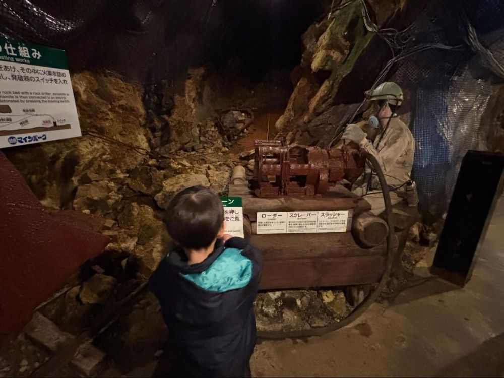 坑道内では、当時の作業風景がリアルに再現されていたり、機械が展示されていたりと、当時の様子を体感的に学ぶことができます。解説は4か国語(日本語・中国語・韓国語・英語)に対応しています。