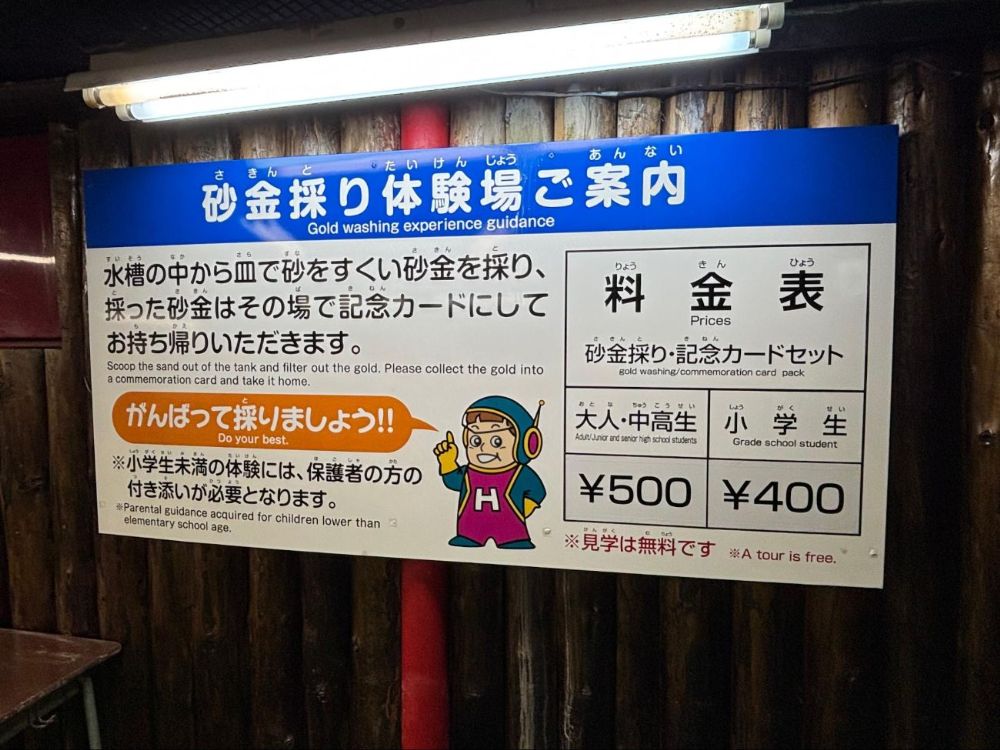 ・砂金採り体験:中学生以上 500円・小学生 400円・未就学児は大人の付き添いが必要