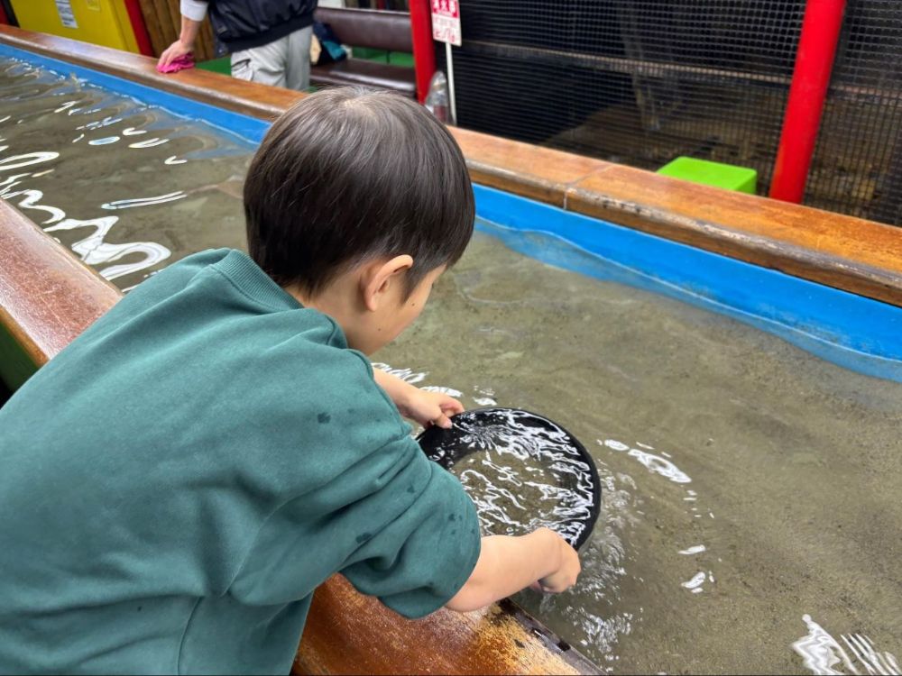 なかなか採れずに苦戦しましたが、砂をすくい続けること20分。何とか見つけることができました!砂の中に、金色にキラリと光るものが見えた瞬間は感動です!