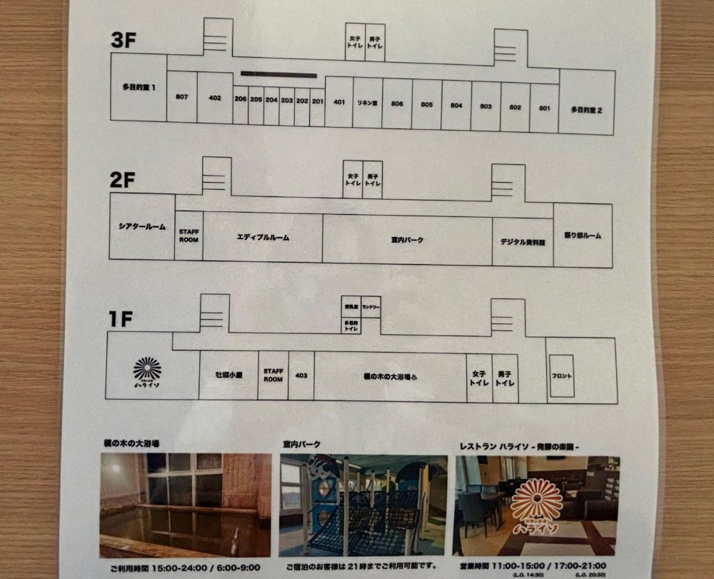 旧校舎の中は、1階が温泉やレストランがある「コミュニティフロア」、2階が防災室内パークやデジタル資料館がある「体験フロア」、3階が「宿泊フロア」となっています。