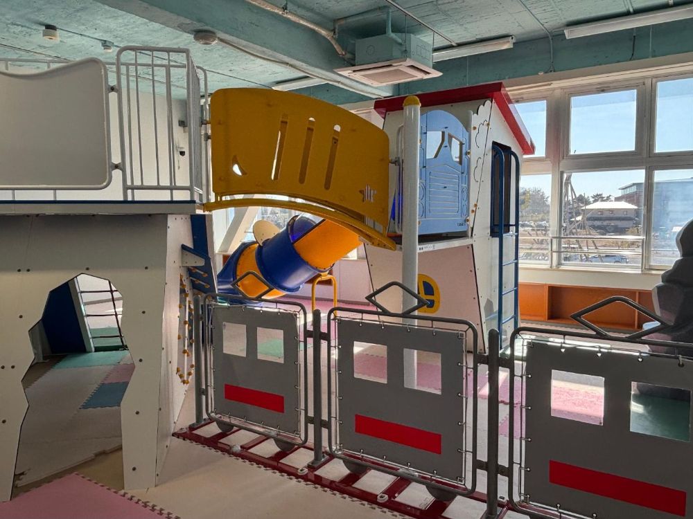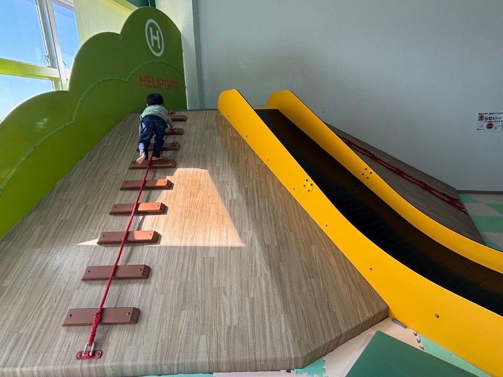 今回、子どもたちと真っ先に向かったのが、防災室内パーク。船や電車といった乗り物をモチーフにしたカラフルな遊具に子どもたちは興味津々。目を輝かせて飛び込んでいきました!