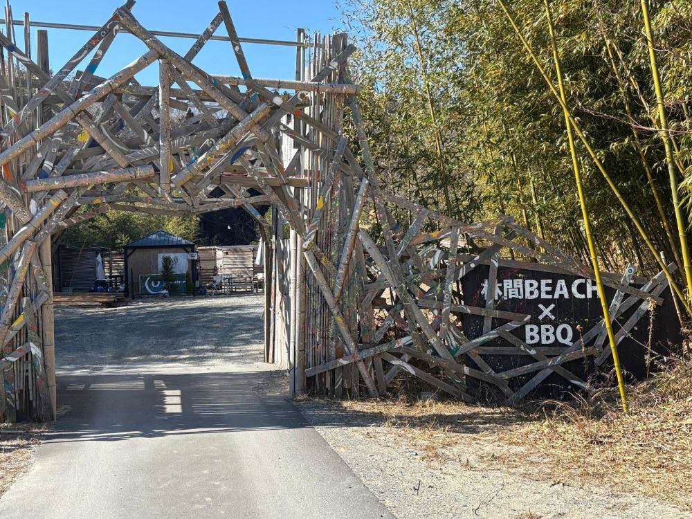ドッグランを先に進むと「林間BEACH×BBQ」という看板が見えてきました。