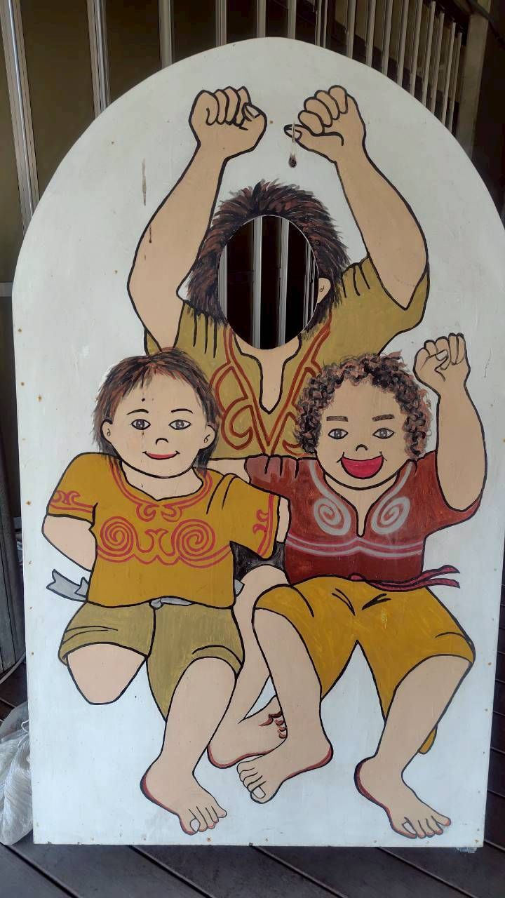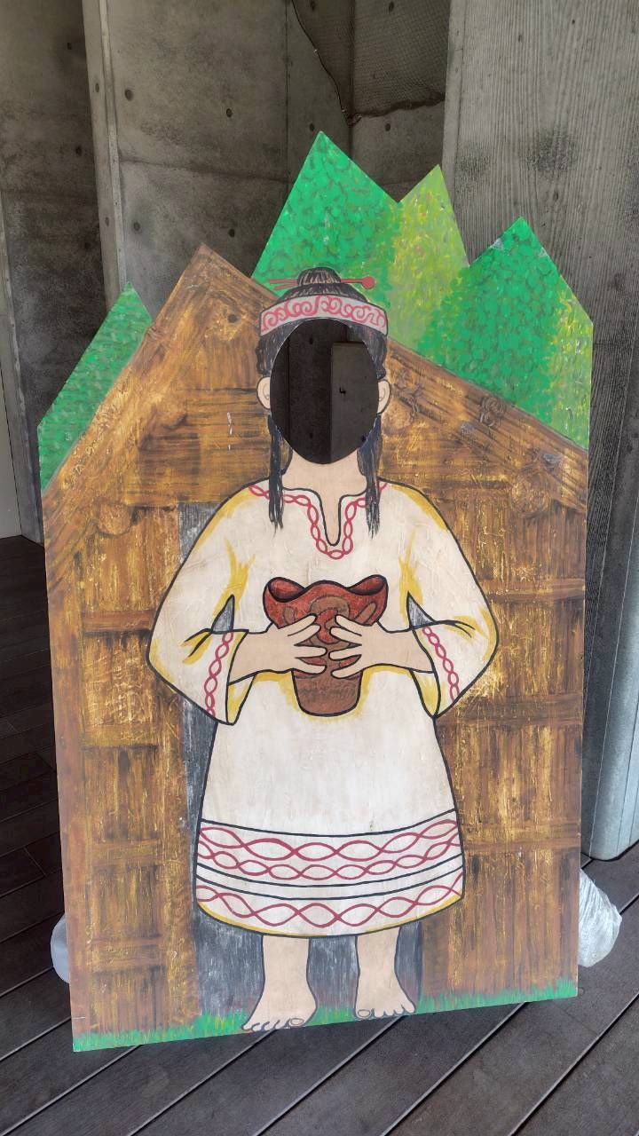 エントランス入口付近の縄文人の顔ハメパネル