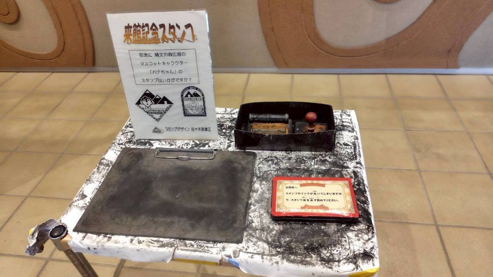 来館記念スタンプはこちらで押してください。ミュージアムグッズもガイダンス展示室前で売っています。
