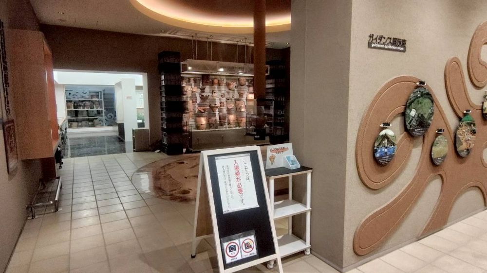 エントランスホール。建物1階には、約200平方メートルのガイダンス展示室と体験活動室や体験工房、トイレがあります。建物は入場無料ですが、展示室のみ入館料が必要です。