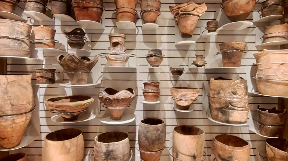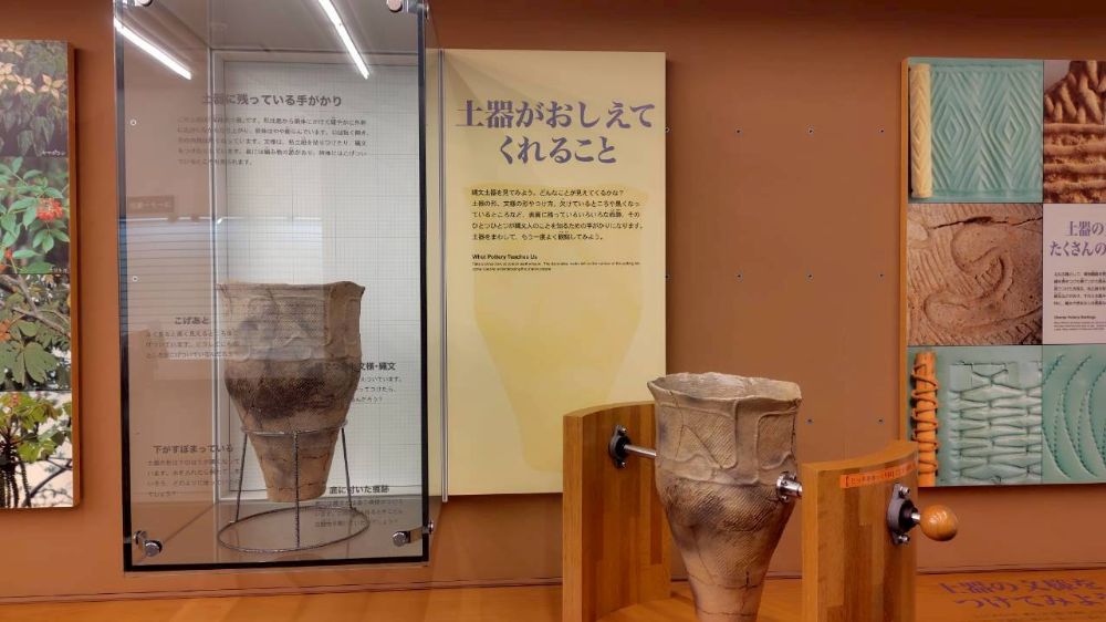 土器の形や模様の違いが分かりやすく、実用性と美しさを兼ね備えた造形に目を奪われますね。