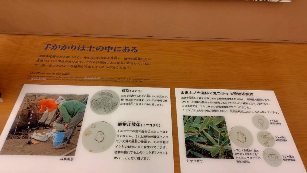花粉も地層の土の調査で見つかるなんてすごいですよね。花粉を保護する外側の膜はかなり丈夫なようで、長い間土の中に埋まっていても外側の膜だけは化石となり土の中に残るそうです。そこから、どんな植物が生育していたのかで、どんな気候の場所で何を食べていたのか分かるのですから、花粉も当時の暮らしを紐解く重要な手がかりですね。