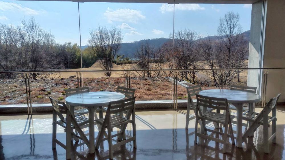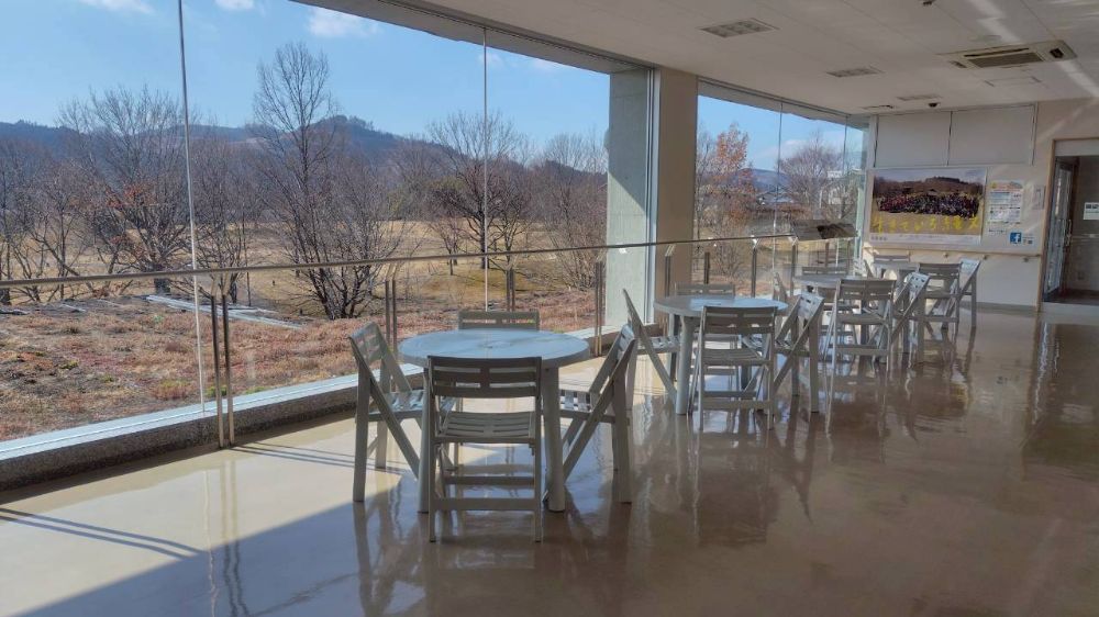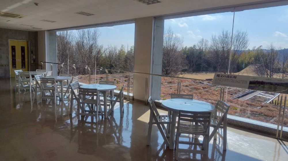 2階には展望休憩スペースがあり、復元された縄文ムラを見渡しながらゆったりと過ごせます。(飲食可)