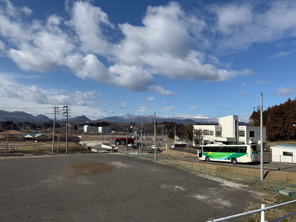 到着してすぐ目に入ったのは、開放的な風景と、雪の白と山肌の灰色が織りなす美しいコントラストの山々でした。