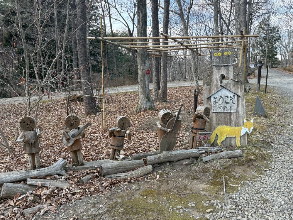 入り口には、木材で作られたかわいらしいキャラクターたちが出迎えてくれます。