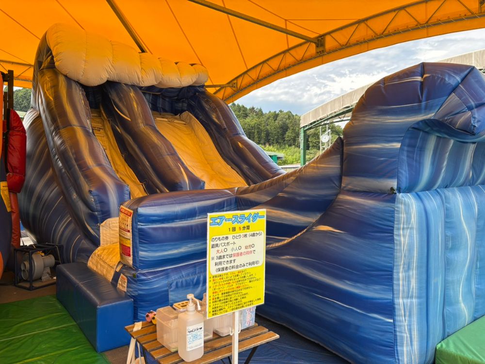 子どもに人気のふわふわエアー遊具は5種類あります。1グループごとの交代制のため、小さいお子さんでも安全に遊べます。