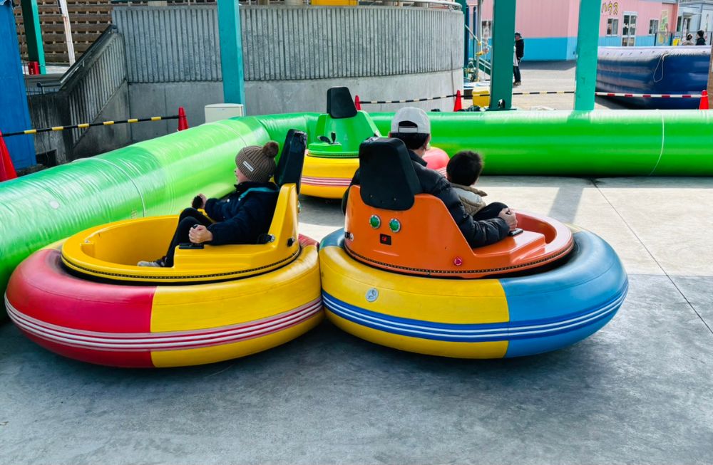 ターンバンパーはくるくる回ったり、前に進んだり、自分で操作して動かすアトラクション。お互いにぶつかりあってスリル満点です!