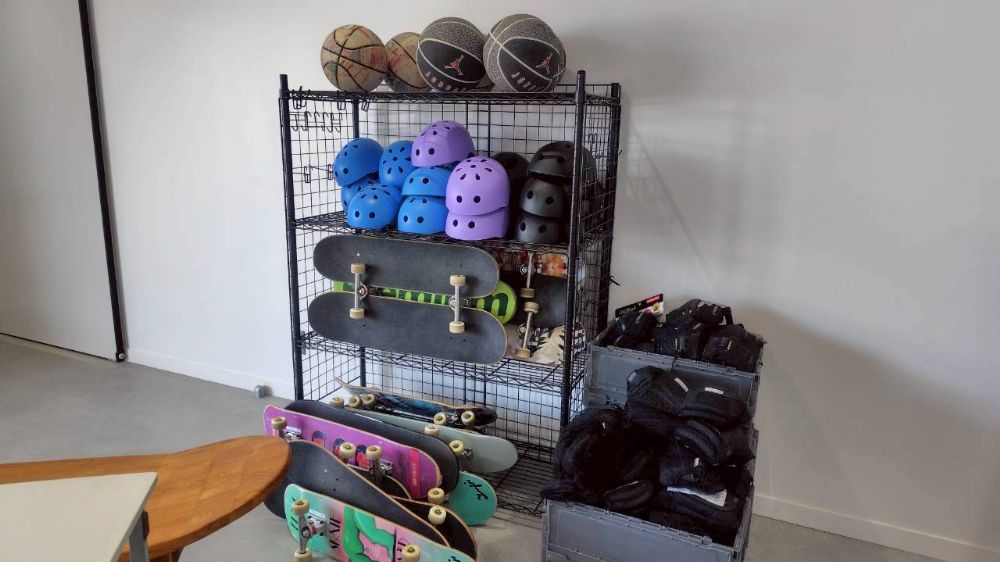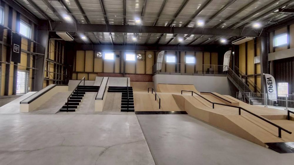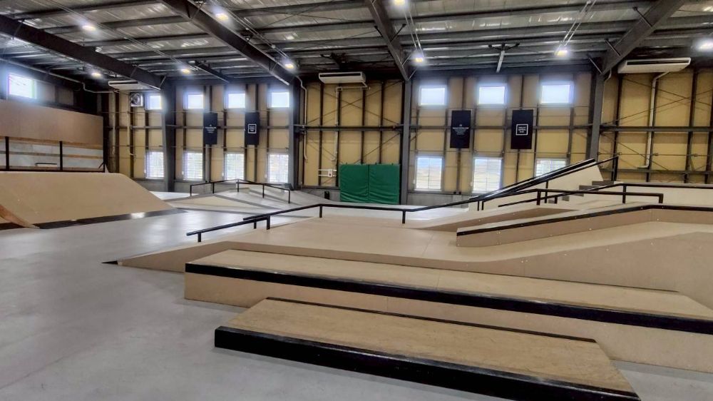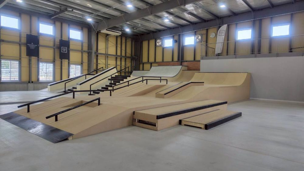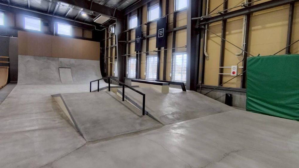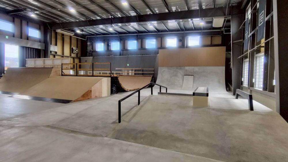 冷暖房完備で一日中快適にスケートボードが楽しめる室内スケート場。