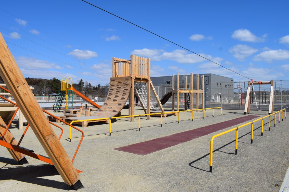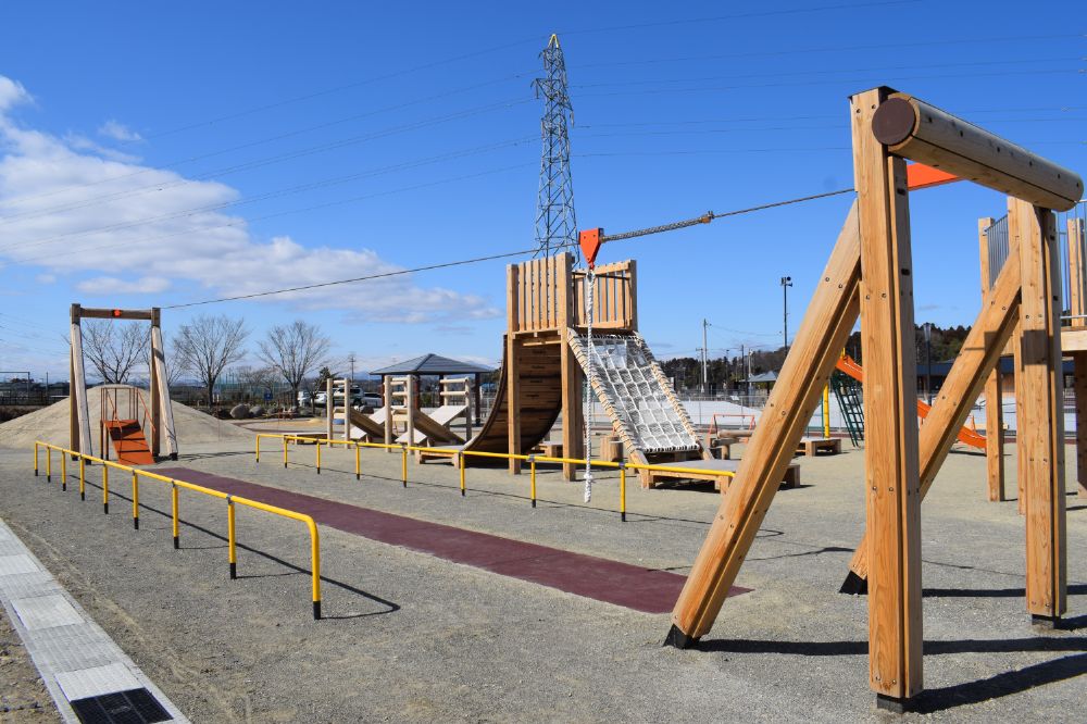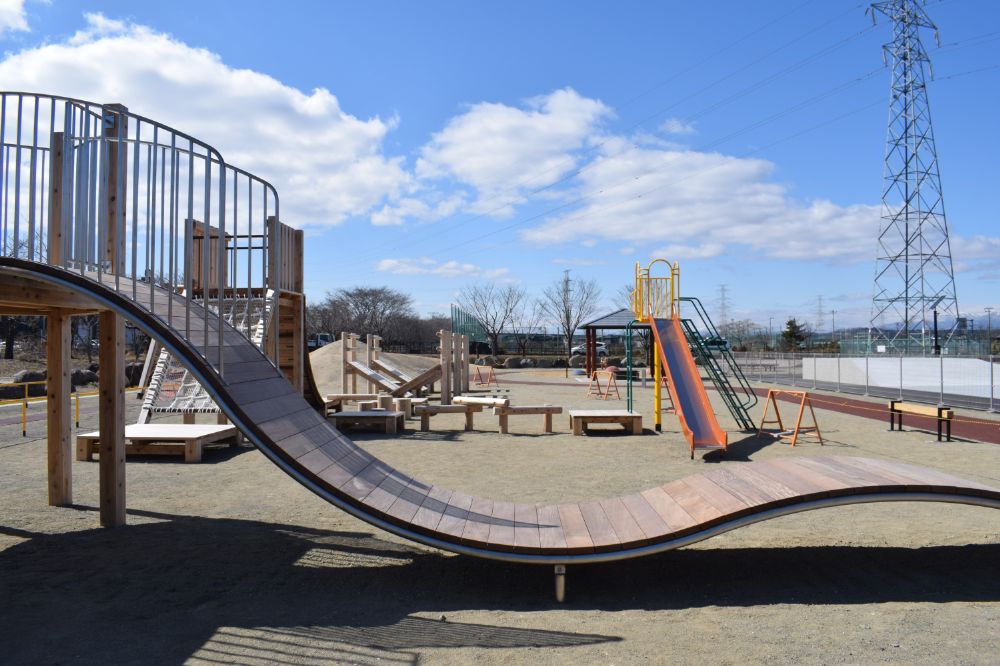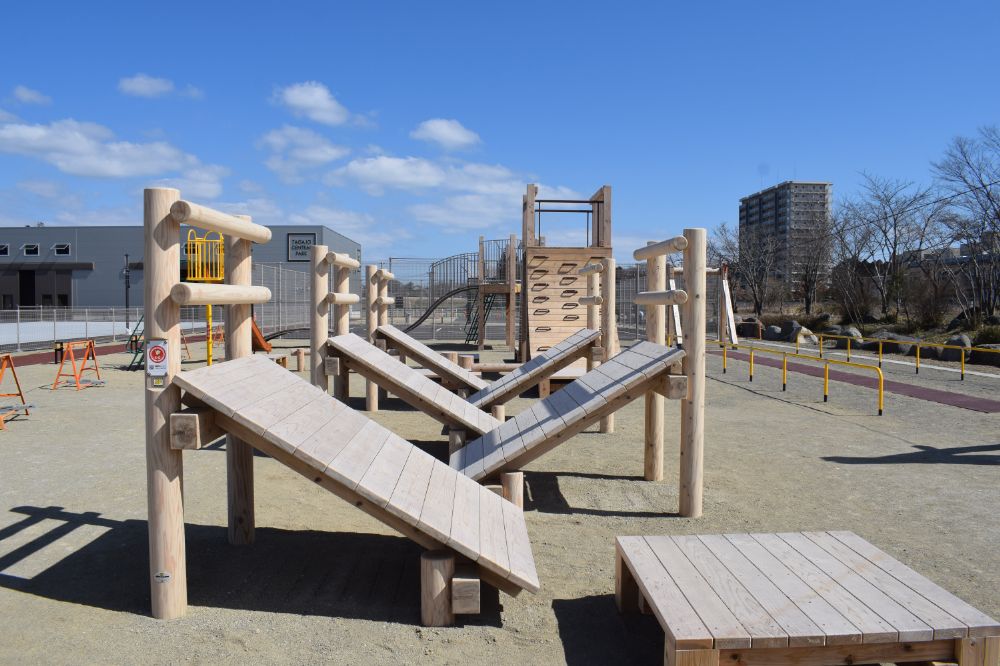 園内には、幼児・児童向けの遊具やアスレチック遊具があり、小さな子どもたちもスケートパークを眺めながら楽しむことができます。