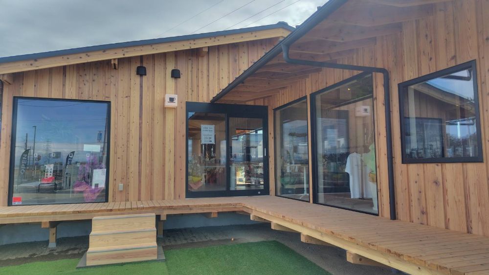 バリアフリーのスロープありで、車椅子のお客様も利用できます。(入口は反対側です。)