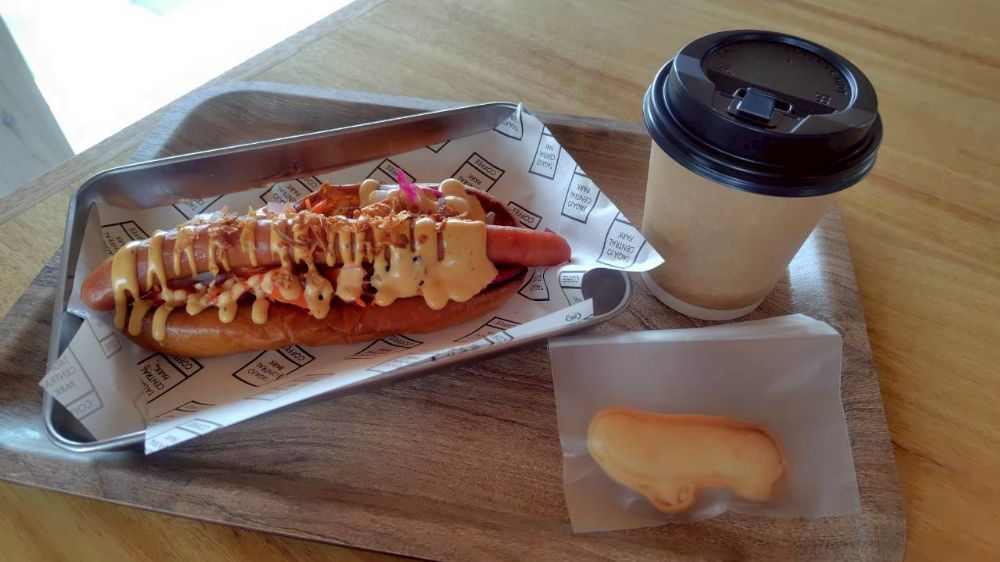セットドリンクにコーヒーを頼むとスケボーのかたちのかわいいクッキーが一緒に付いてきました。