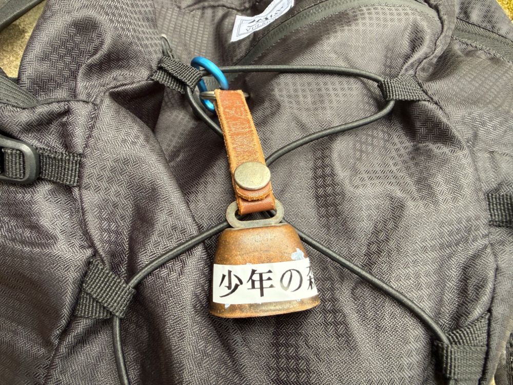 昨今は熊の出没に関するニュースも多いため、クマ鈴を装着しました。
