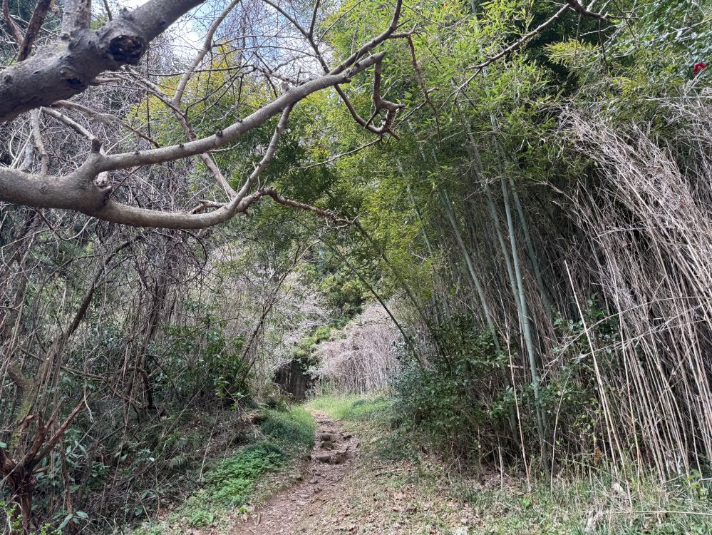 道沿いには木々や竹が生い茂り、まるで自然のトンネルのような道が続く場所もありました。