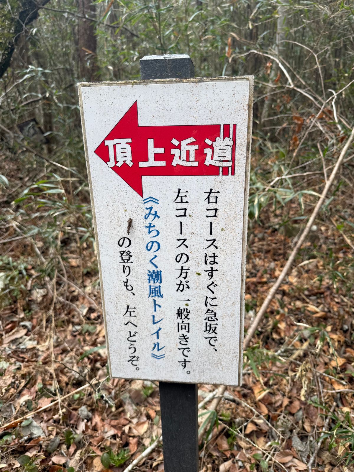 案内を見ると、右は急坂コース、左は山頂への近道コースとのこと。